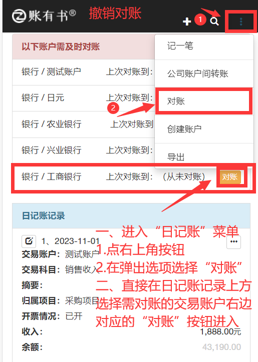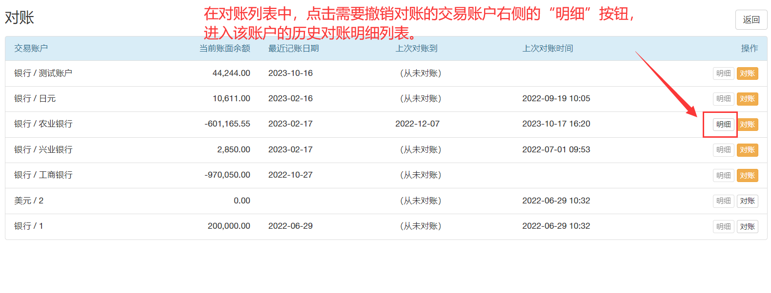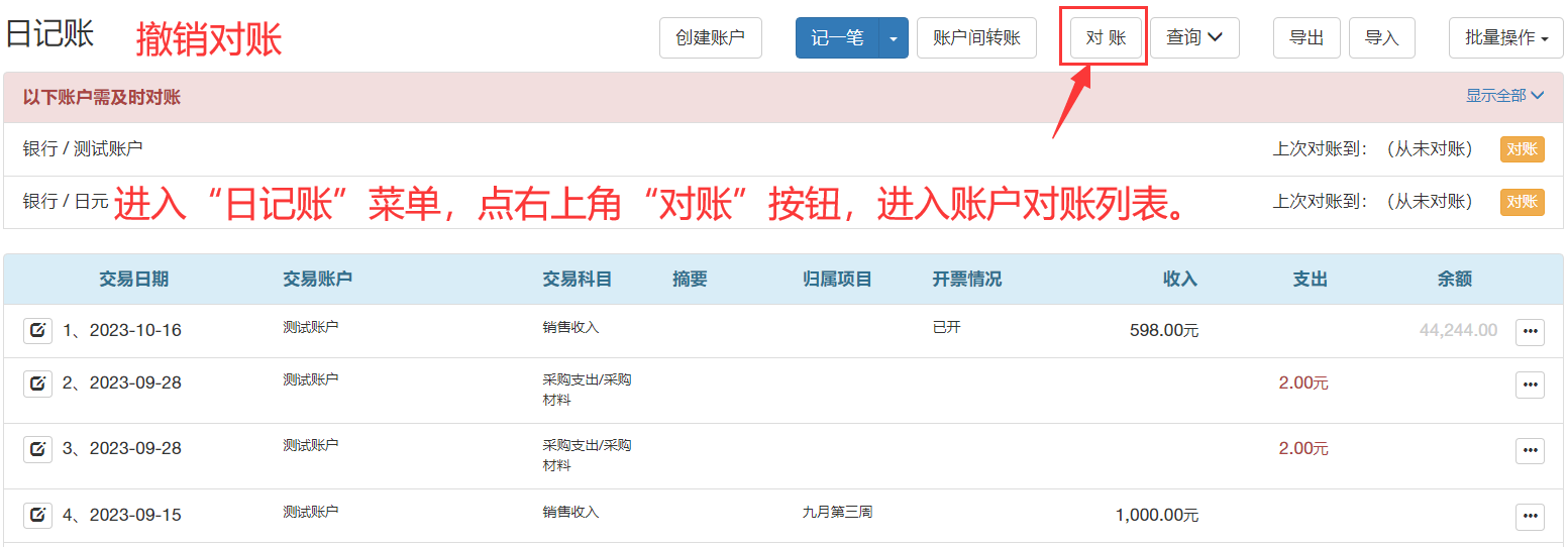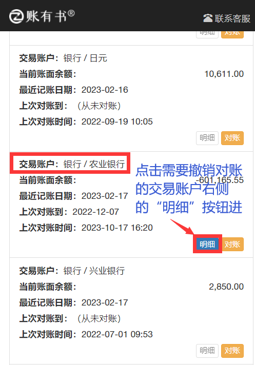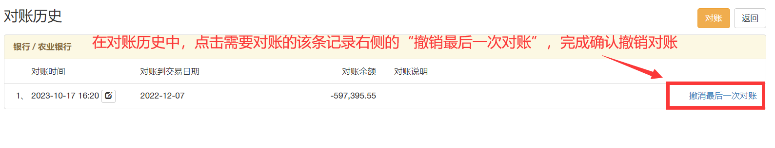 某個交易賬戶對完賬之后,可能會出現需要返回對賬完的時間段進行添加、修改、刪除的操作,這時需要先撤銷對賬,才能進行下一步的操作。