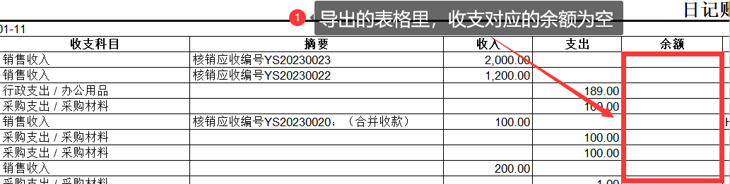 導出的日記賬余額為空 用戶將日記賬導出成EXCEL表格,發現每筆收支對應的余額框為空(如下圖)。出現這種情況的原因是余額為空的收支對應的交易賬戶未進行對賬或者未對賬至收支對應的日期內。
